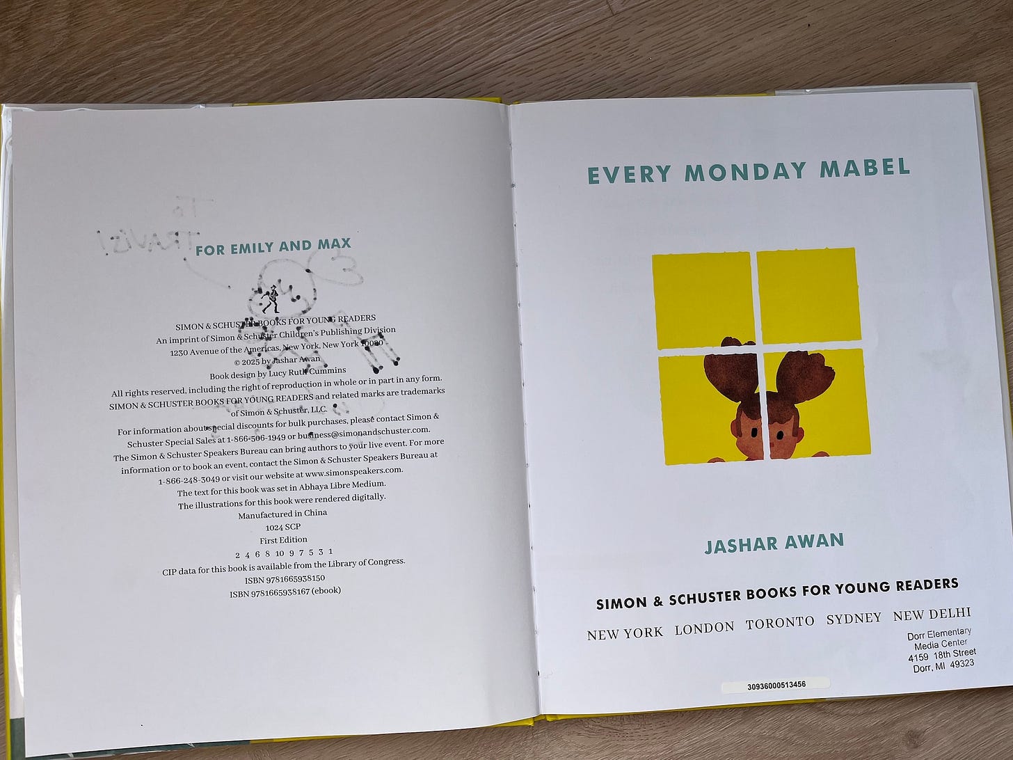 My fellow Caldecottians - can I call you Caldecottians? No? Okay, that’s probably for the best. My fellow committee members, I’ve gathered you all here to discuss EVERY MONDAY MABEL by Jashar Awan. As you’ll see, it’s truly one of the most distinguished American picture books of the year.